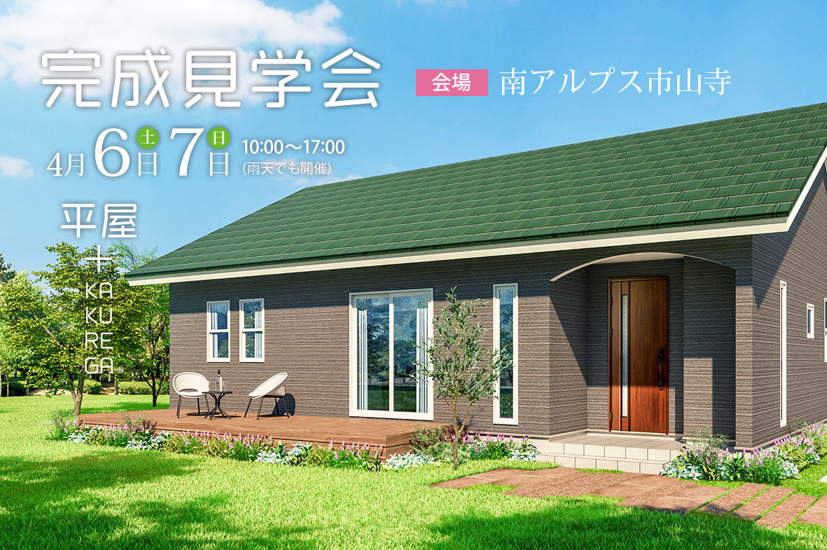 富士川町天神中條「家族4人で暮らす平屋」の完成見学会を開催いたします。